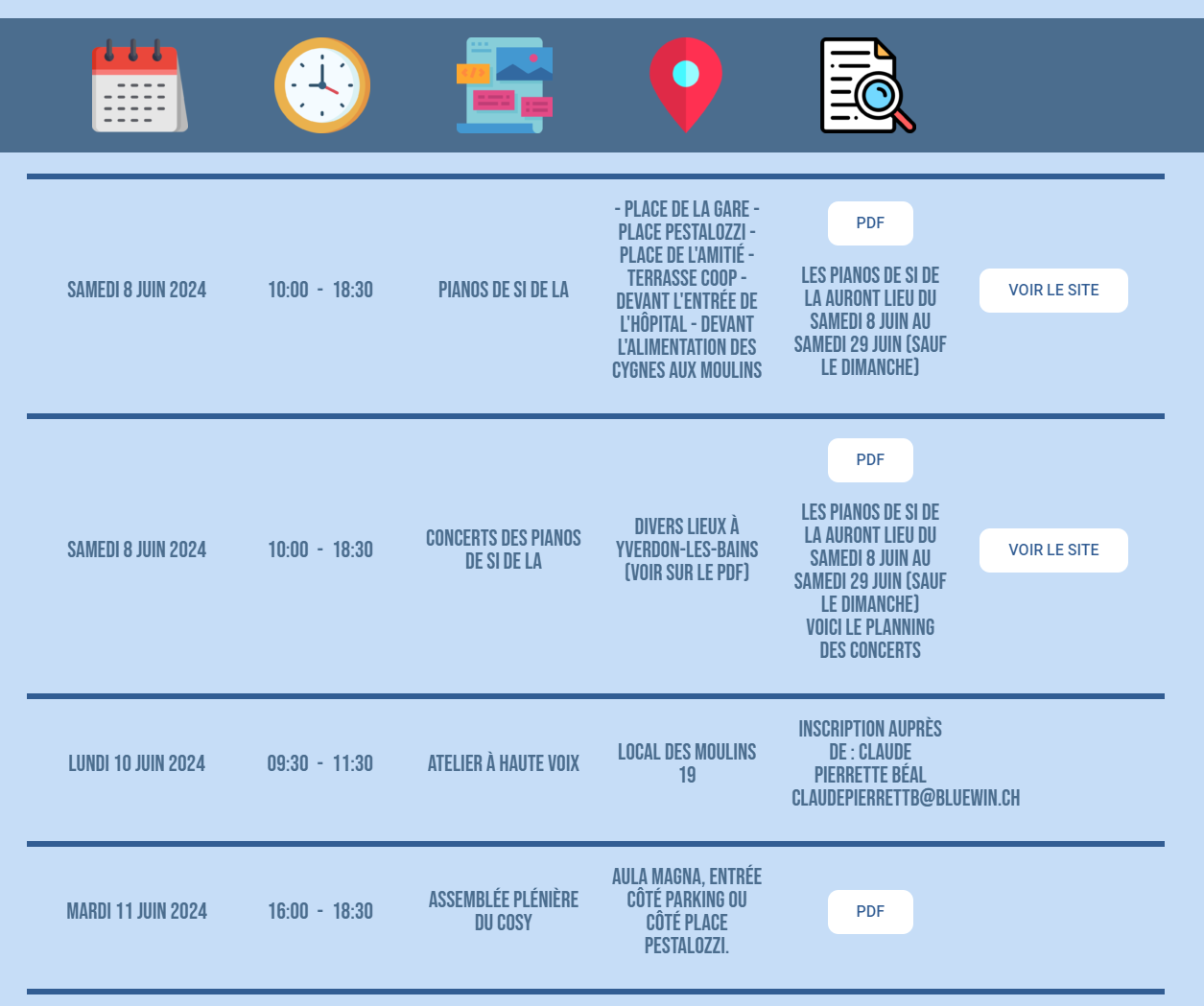 Le nouveau site comprend plusieurs fonctionnalités : un agenda, une gestion des droits pour les membres, un partage de documents basé sur les rôles, une section réservée aux membres du comité, une inscription automatisée pour les nouveaux membres avec toutes les informations transmises en temps réel sur un Google Sheet, et un système d’inscription automatique aux événements. Toutes les interfaces administratives ont été simplifiées au maximum, en tenant compte du public cible qui est plutôt âgé.